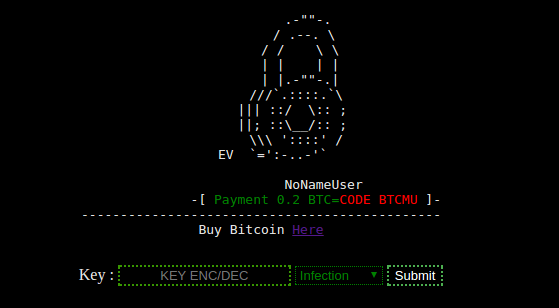 所有受影響的檔案都會被刪除並被同名加密檔案取代,但後者會有.EV 的副檔名,表示已被加密。