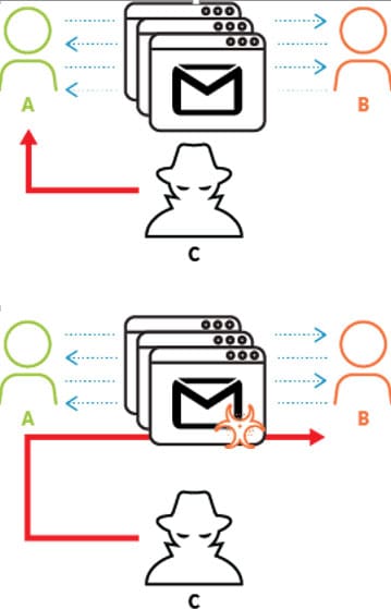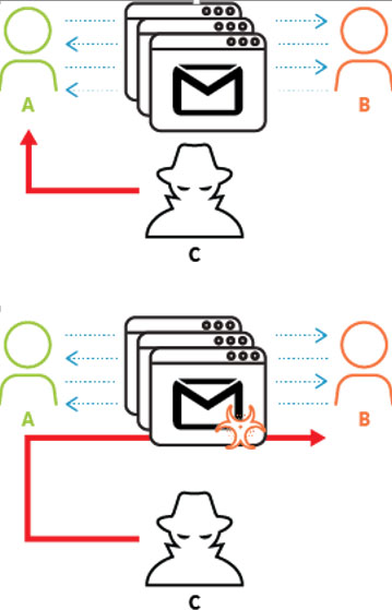 - 攻擊者 Charlie (C) 將發動攻擊,例如利用某種認證竊取,以便控制 Alice 的電子郵件帳戶。