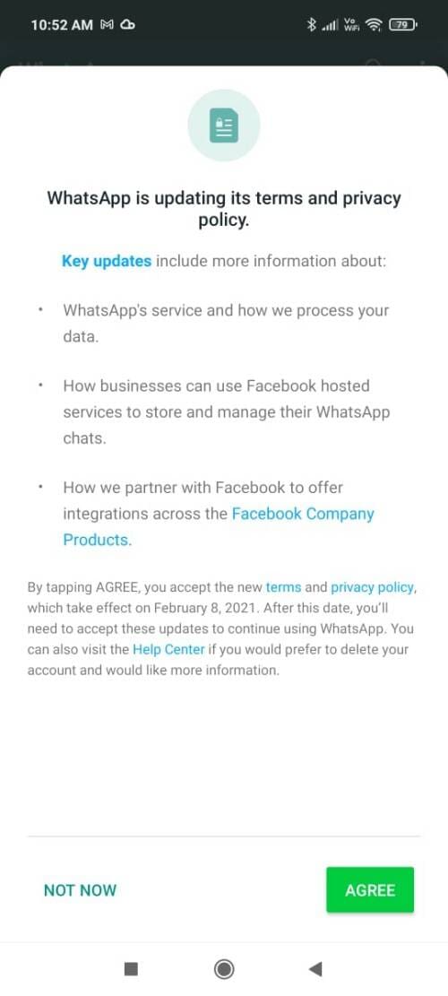 WhatsApp 上次更新服務條款是在 2020 年 1 月 28 日,但直到 7 月 20 日才生效。
