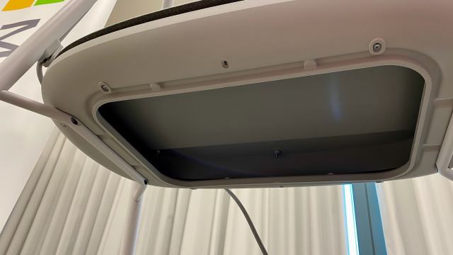 做為會議機,Surface Hub 2S 隨機附送 4K 攝影機,可安插在螢幕四周的 USB Type-C 插孔上,但也許是因為這個 4K 攝影機是為了廣視角設計,因此沒有導入 Intel RealSense 技術,所以 Surface Hub 2S 沒辦法使用 Windows Hello 臉孔辨識登入技術,這導致簡報者若需要切換帳號時,得在眾目睽睽之下輸入帳號與密碼。當然,螢幕畫面上的密碼肯定是以星號*呈現,但簡報者也必須使用螢幕畫面上的軟體鍵盤來輸入密碼,有可能造成資安破口。