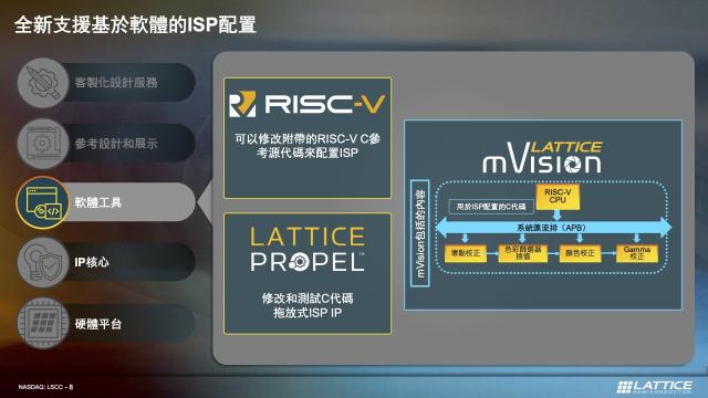萊迪思半導體亞太區資深市場開發經理林國松表示 mVision 2.0 提供全新強化的圖像訊號處理器 (Image Signal Processor, ISP),功耗極低,支援多種包括 MIPI 的介面,以及萊迪思的 FPGA 晶片如 ECP5 、 CrossLink 或 CrossLink-NX 。將 CrossLink-NX 與嵌入式 RISC-V 處理器配合使用可以實現更小尺寸、更高效的 ISP 設計。