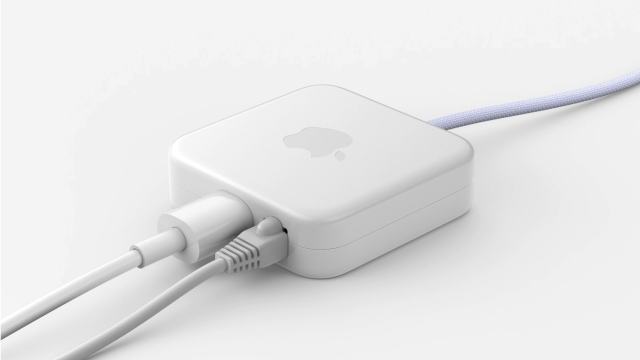 而蘋果為了讓新款 iMac 更精簡,首次採用非常大膽的設計,讓 iMac 主機本身不設置 RJ-45 網路孔,而是透過一條特製的纜線,連接到電源供應器上,再將 RJ-45 網路孔放在電源供應器上,讓這一條特製纜線可同時供應電力並傳輸有線網路訊號。