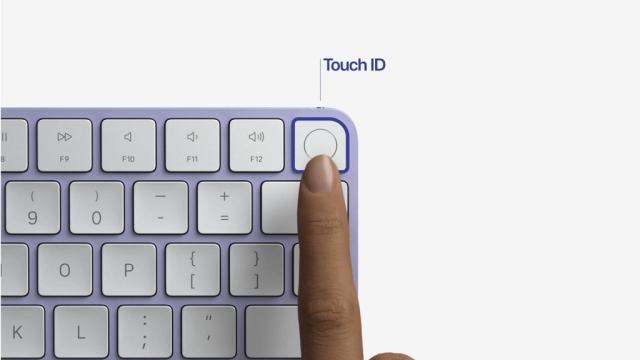 談到鍵盤,這次 Apple 也更新了無線鍵盤產品,首次在鍵盤上加入了 Touch ID 按鈕,讓 iMac 也能夠支援指紋辨識,可用於線上付款認證,或是自動識別用戶身份,切換不同使用者的桌面。