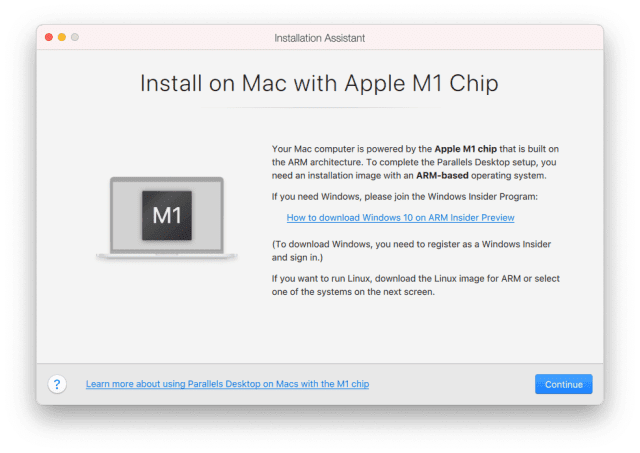 以往 PD 會有一個自動下載 Windows 10 的功能,使用者無須自備 ISO 檔。但是 M1 版本的 PD17 就沒有這個功能,改成提示使用者如何取得 Windows 10 的 ARM ISO 。
