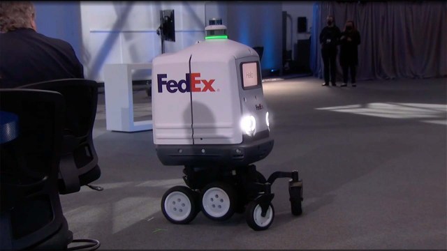 Pat Gelsinger 在 Intel Innovation 大會中,展示了由 DEKA R&D 與 FedEx 合作開發的 Roxo 送貨機器人,採用 Intel 11th-Gen Core i7 處理器、 RealSense 攝影機與 OpenVINO 人工智慧推理引擎,能夠辨識道路狀況與進行導航,來實現貨物運送的最後一哩路。