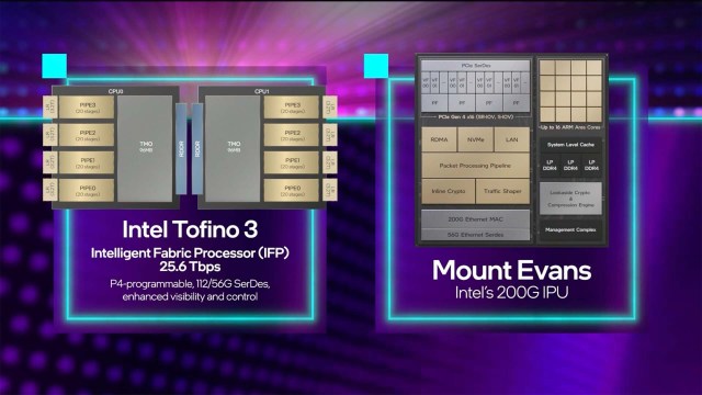 而 Intel 也推出代號 Mount Evans 的 ASIC 架構 IPU,以及支援 P4 可程式化的 Tofino 3 英特爾結構處理器 (IFP),讓網管人員可透過 AI 技術來實現能夠自我除錯與修復的雲端網路。