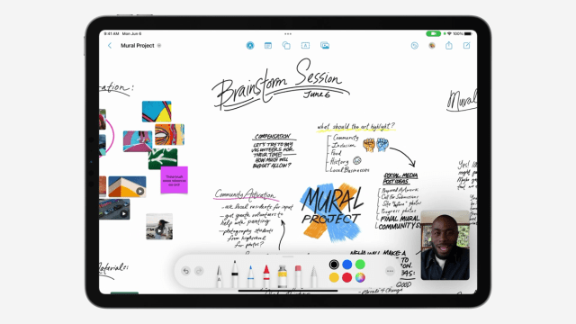 iPadOS 16 最大特色為多工作業能力,加入類似桌機的視窗管理功能,名為 Stage Manager,方便你在 iPad 上同時執行多個 App 及視窗。此外,蘋果也希望 iPad 成為 Mac 電腦的第二螢幕或外接顯示器。蘋果主管也示範以 Apple Pencil 在 iPad 做筆記,然後將筆記文件丟到 Mac 上進一步編輯。一個全新 App「FreeForm」類似虛擬空白畫布,則讓用戶和其團隊針對共享文件、相片、影片、 PDF 、即時共同編輯。此外也 Safari 和 Keynote 也加強了協同功能。