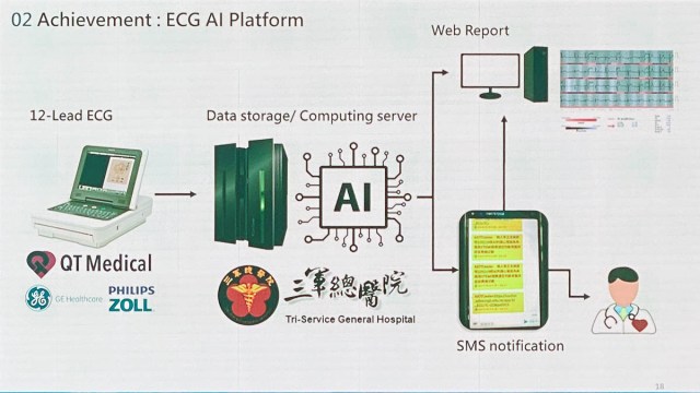 除了語音辨識之外,方文輝也表示三軍總醫院在醫療技術上有著顯著的發展,龐大的醫療資料協助三總開發出多種輔助診斷工具,例如已經研發出來的心電圖輔助診斷工具,可直接從心電圖預測鉀離子濃度,預測準確度甚至超過了傳統的抽血和氣體分析方法。