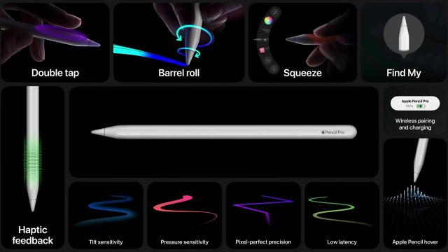 全新的 Apple Pencil Pro 現在支援觸覺回饋,這是對蘋果觸控筆的一大創新。它新增一顆感應器,支援擠壓手勢操作,用戶可以通過擠壓來快速開啟功能選單,以及支援「尋找我的設備」功能,使得遺失 Apple Pancil Pro 的風險大為降低。這款高級觸控筆與 iPad Pro 完美相容,售價為 129 美元(台灣價格 NT$ 4,390)。
