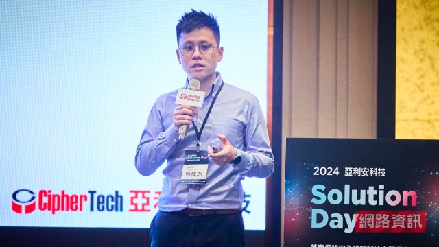 亞利安科技資安技術支援部協理王添龍,在此場議程中介紹 Thales 的資料安全技術與身分認證管理工具。