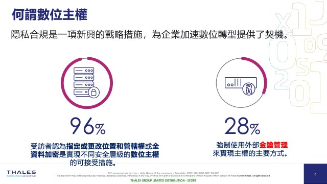 在這場議程中,Thales 資安顧問沈宗享詳細介紹了針對混合雲和多雲環境下的資料安全解決方案,講解了數位主權的重要性及其對保護企業雲端數據的影響,並指出在今天的多雲和混合雲配置中,保持資料控制權的重要性。