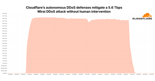 Web 基礎架構及安全廠商 Cloudflare 近日偵測,並防堵了一樁 5.6Tbps 的分散式阻斷服務 (DDoS) 攻擊,是迄今有紀錄以來最大的攻擊。