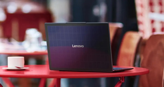 另一款概念筆電 Yoga Solar PC 為使用太陽能的產品,它使用背接觸矽晶太陽能電池 (Back Contact Cell),將太陽能板及元件嵌在上蓋,擴大吸收面積,可將 24% 的光轉成電力。聯想聲稱即使是低光源處也能充電,若直接曝曬在太陽光下 20 分鐘充電,可支撐播放一小時影片。 Yoga Solar PC 體形輕薄,厚僅 1.5 公分,重 1.22 公斤。