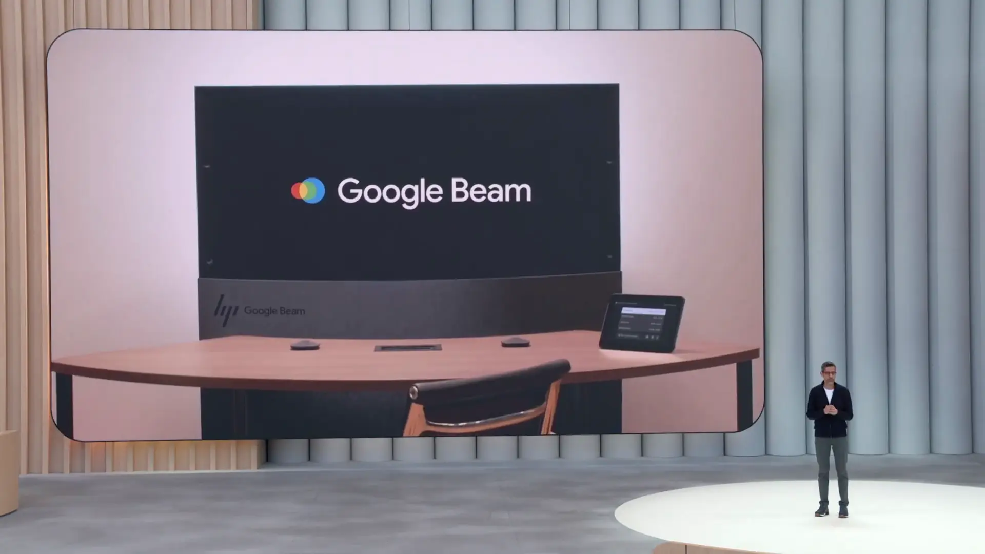 Beam 原名 Starline,它是結合軟、硬體,包括六相機陣列和自製光場顯示器,讓使用者和遠距的對方有如面對面聊天。由一個 AI 模型將置於不同角度的相機拍攝的影像轉換出來,投放成 3D 影像。