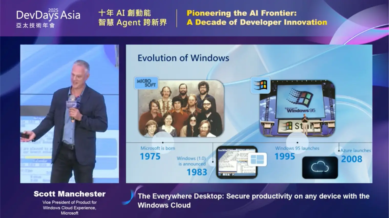 對我來說,這趟旅程最迷人的地方,在於我們一邊延續 Windows 的核心價值,一邊用雲端與 AI 打開全新的可能。下一個 50 年,真正的 Windows,不在某一台機器裡,而是在你需要它的每一個地方。