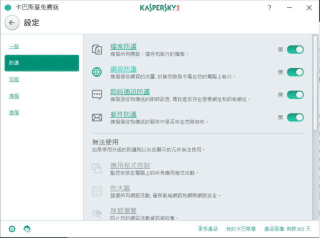 卡巴斯基免費版比付費版佔用的系統資源少,運行速度更快。它基於的技術與原先版本的相同,大家都知道,這些技術在獨立測試中總是名列前茅。這意味著,儘管免費版只含有最基本防毒的功能,但不失為一款抵禦病毒的重量級軟體 – 對此我們同樣感到驕傲。
